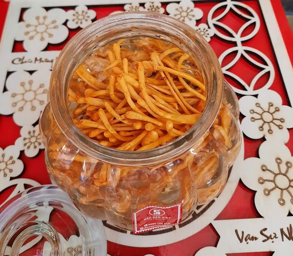 Đông trùng hạ thảo đặc sản Việt được trồng theo công nghệ sinh học tiên tiến, nguồn nấm tốt và dinh dưỡng hữu cơ. Vì vậy sản phẩm rất tự nhiên, chứa nhiều thành phần hoạt chất tốt, hàm lượng cao, mang lại tác dụng làm sáng cho sức khỏe. Đông trùng hạ thảo được ngâm với rượu đế nếp Gò đen truyền thống, giúp hấp thụ đông trùng hạ thảo tốt hơn.